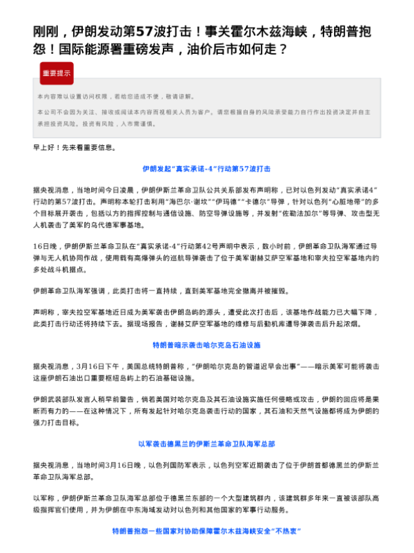 【瑞达期货】【202303】刚刚,伊朗发动第57波打击!事关霍尔木兹海峡,特朗普抱怨!国际能源署重磅发声,油价后市如何走-4页 证券期货研究报告
