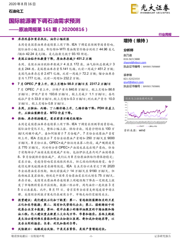 【光大证券】【20200816】原油周报第161期:国际能源署下调石油需求预测-12页 行业研究