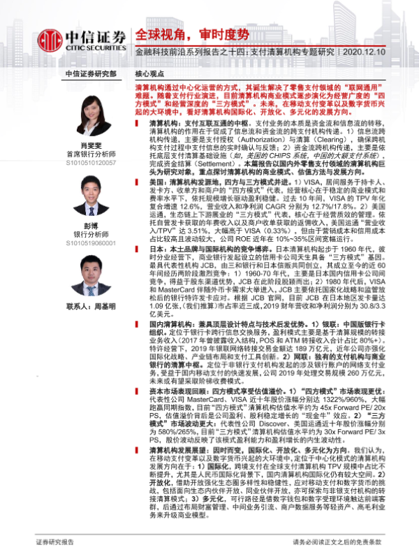 【中信证券】【20201210】金融科技前沿系列报告之十四:支付清算机构专题研究-28页 行业研究