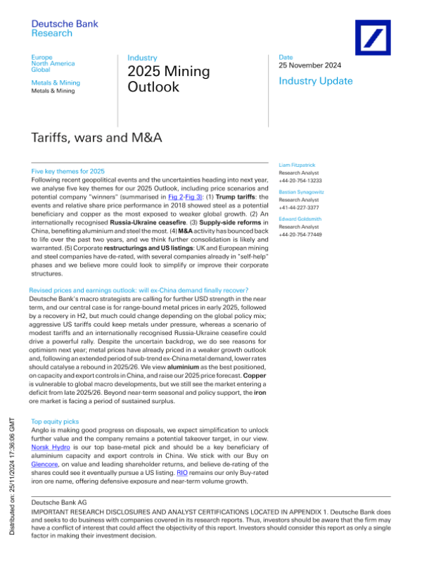 【Deutsche Bank】【20241125】2025 Mining Outlook Tariffs, wars and M&A-67页 行业研究