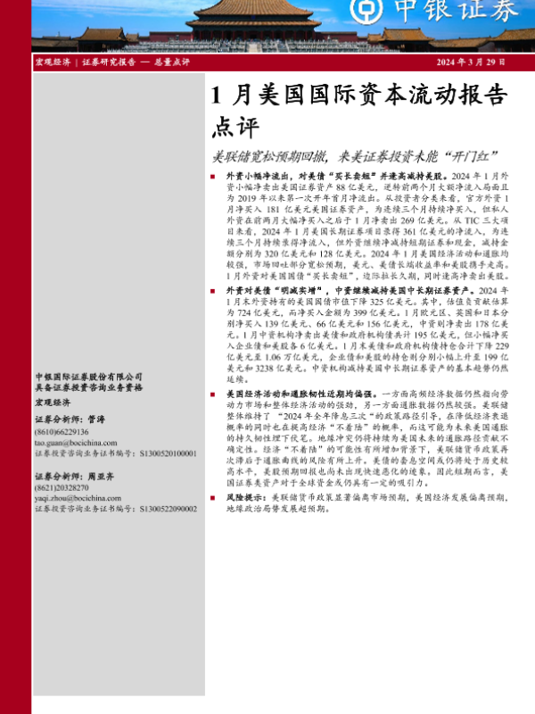 【中银证券】【20240329】1月美国国际资本流动报告点评:美联储宽松预期回撤,来美证券投资未能“开门红”-11页 行业研究