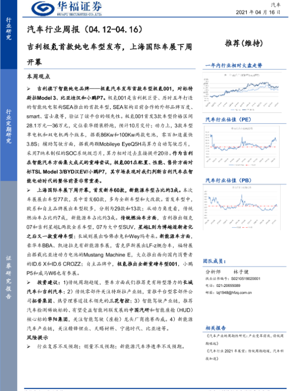 【华福证券】【20210416】20210416-华福证券-汽车行业周报:吉利极氪首款纯电车型发布,上海国际车展下周开幕-7页 行业研究