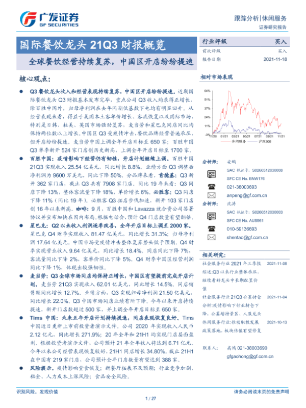 【广发证券】【20211118】国际餐饮龙头21Q3财报概览:全球餐饮经营持续复苏,中国区开店纷纷提速-27页 行业研究