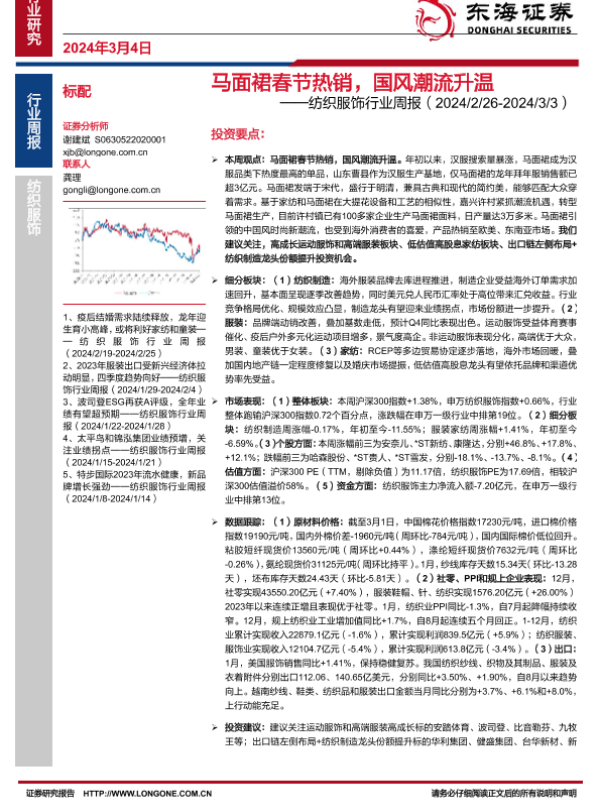 【东海证券】【20240304】20240304-东海证券-纺织服饰行业周报:马面裙春节热销,国风潮流升温-12页 行业研究