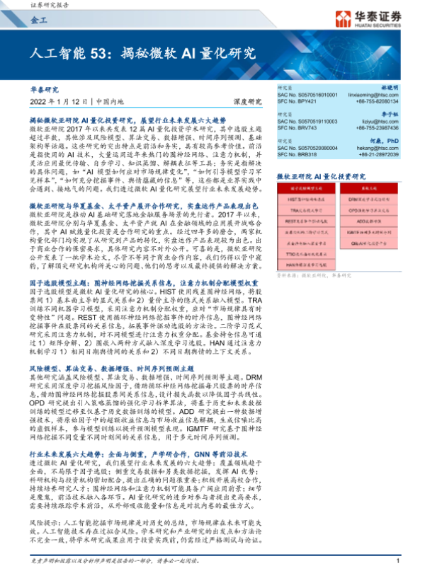 【华泰证券】【20220112】金工深度研究:人工智能53,揭秘微软AI量化研究-32页 行业研究