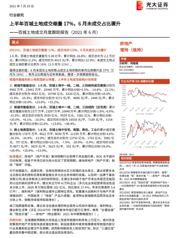 【光大证券】【20210719】百城土地成交月度跟踪报告-14页 行业研究