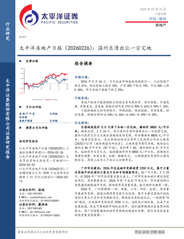 【太平洋证券】【202602】太平洋房地产日报(20260226):温州乐清出让一宗宅地-4页 行业研究