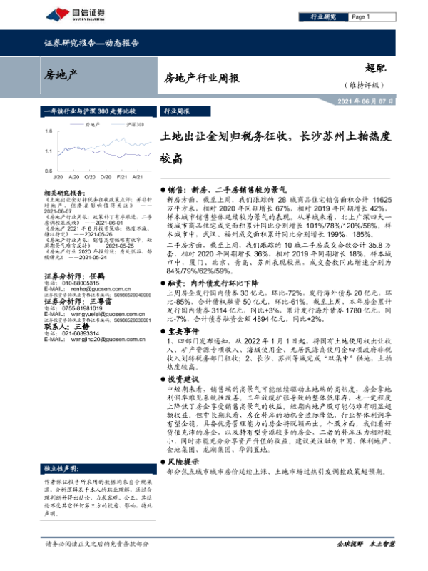 【国信证券】【20210607】房地产行业周报:土地出让金划归税务征收,长沙苏州土拍热度较高-8页 行业研究
