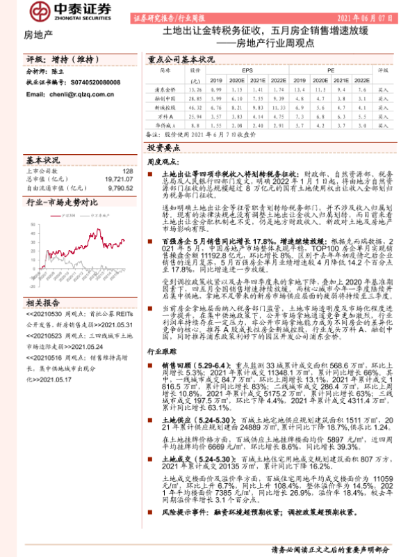 【中泰证券】【20210607】土地出让金转税务征收,五月房企销售增速放缓-12页 行业研究