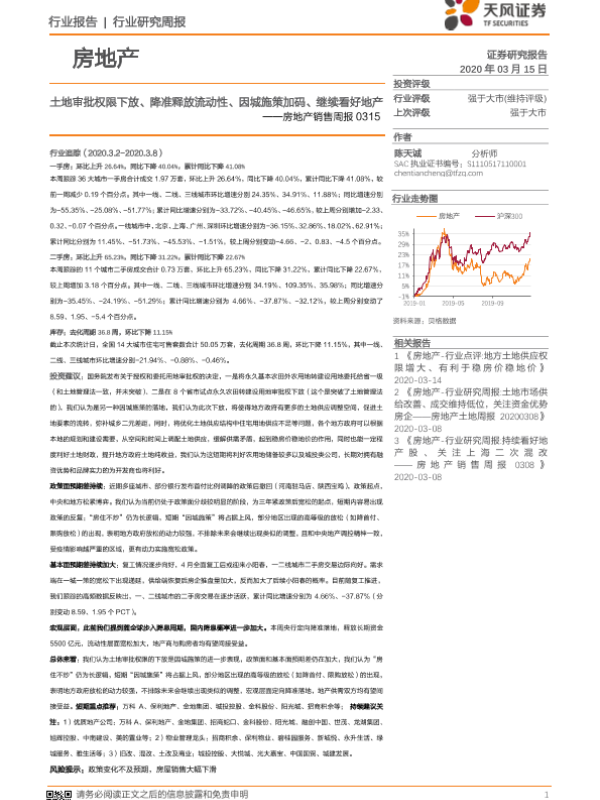 【天风证券】【20200315】土地审批权限下放、降准释放流动性、因城施策加码、继续看好地产-12页 行业研究