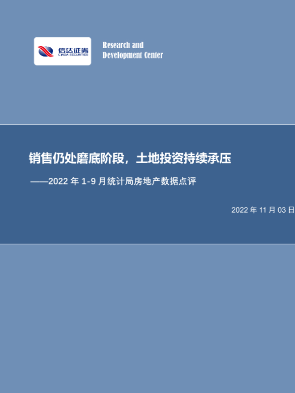 【信达证券】【20221103】2022年1-9月统计局房地产数据点评:销售仍处磨底阶段,土地投资持续承压-16页 行业研究