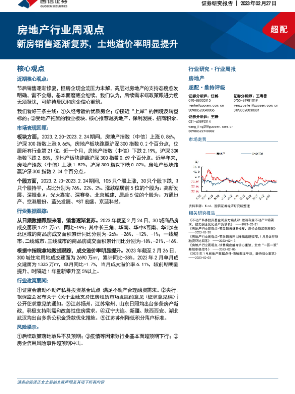 【国信证券】【20230227】房地产行业周观点:新房销售逐渐复苏,土地溢价率明显提升-12页 行业研究