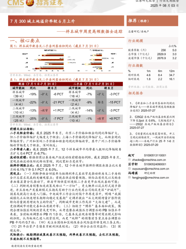 【海通证券】【20250803】房地产行业样本城市周度高频数据全追踪-7月300城土地溢价率较6月上升-11页 证券期货研究报告