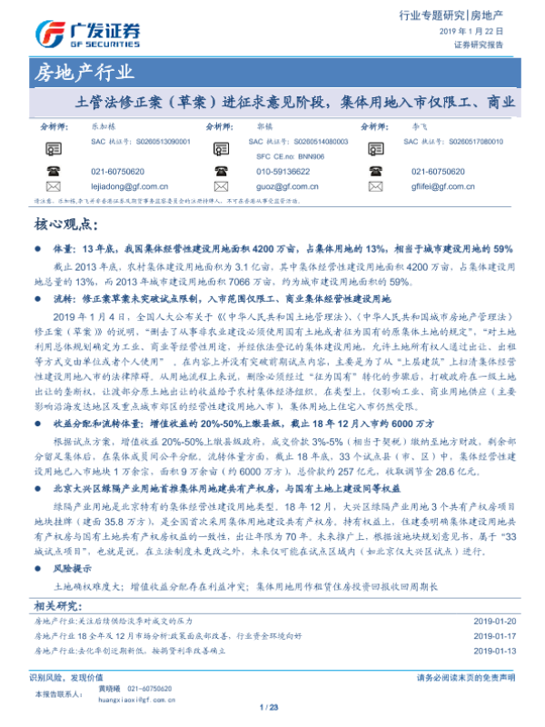 【广发证券】【20190122】土管法修正案(草案)进征求意见阶段,集体用地入市仅限工、商业-23页 行业研究