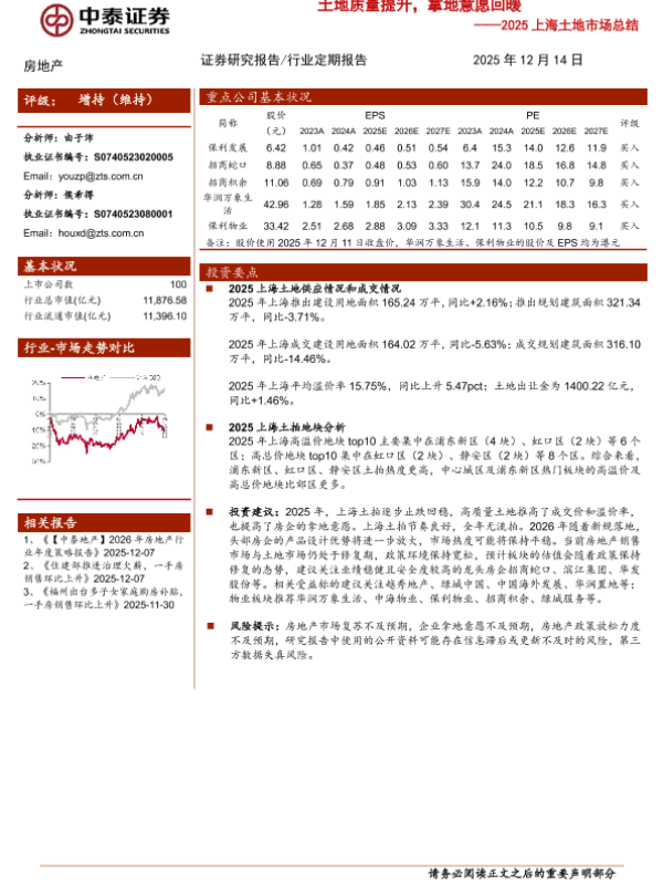 【中泰证券】【202512】2025上海土地市场总结-土地质量提升_拿地意愿回暖-9页 证券期货研究报告