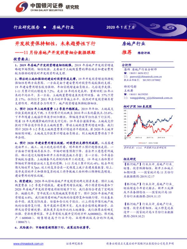 【银河证券】【20200107】1月份房地产开发投资细分数据跟踪:开发投资保持韧性,未来趋势性下行-9页 行业研究