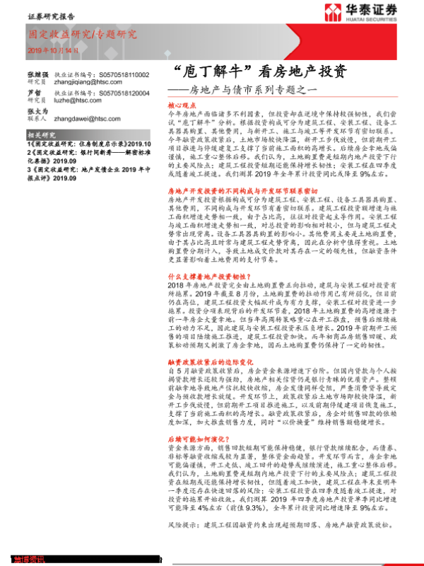 【华泰证券】【20191014】‘庖丁解牛’看房地产投资-12页 行业研究