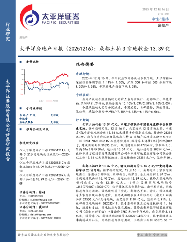 【太平洋证券】【202512】太平洋房地产日报(20251216):成都土拍 3宗地收金 13.39亿-4页 行业研究