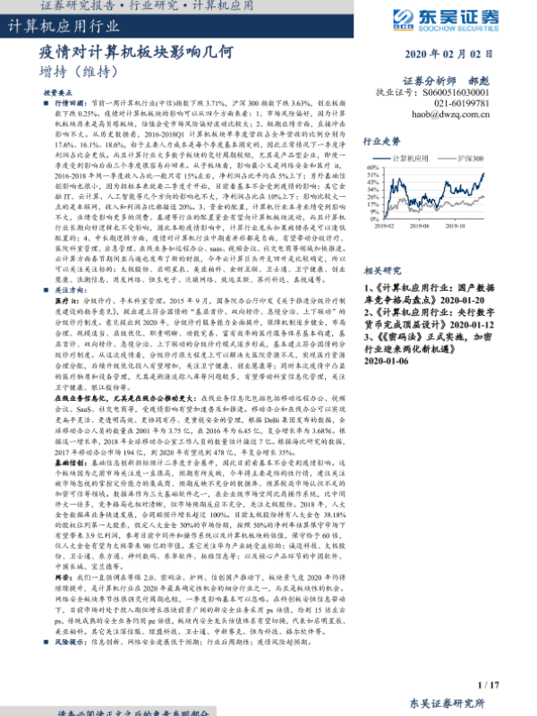 【东吴证券】【20200202】20200202-东吴证券-计算机应用行业周报跟踪:疫情对计算机板块影响几何-17页 行业研究