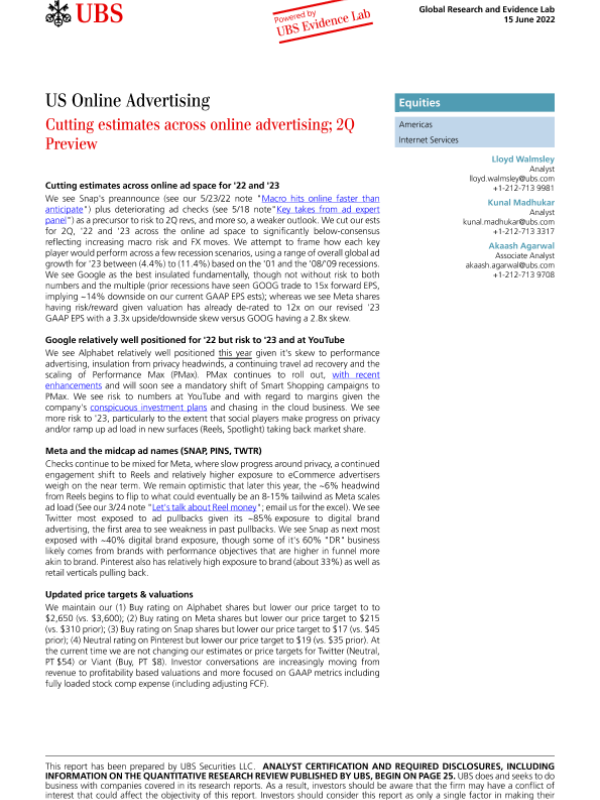 【瑞银】【20220615】美国在线广告:降低对在线广告的预期;第二季度预览-32页 行业研究