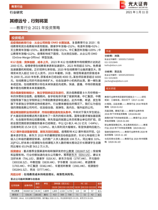 【光大证券】【20210111】教育行业2021年投资策略:其修远兮,行则将至-23页 行业研究