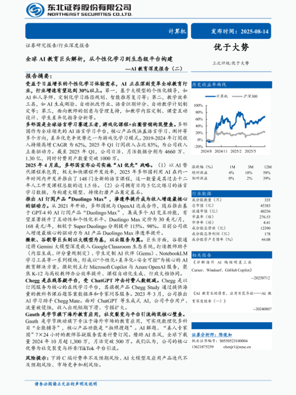 【东北证券】【202508】全球 AI教育巨头解析,从个性化学习到生态级平台构建-34页 证券期货研究报告