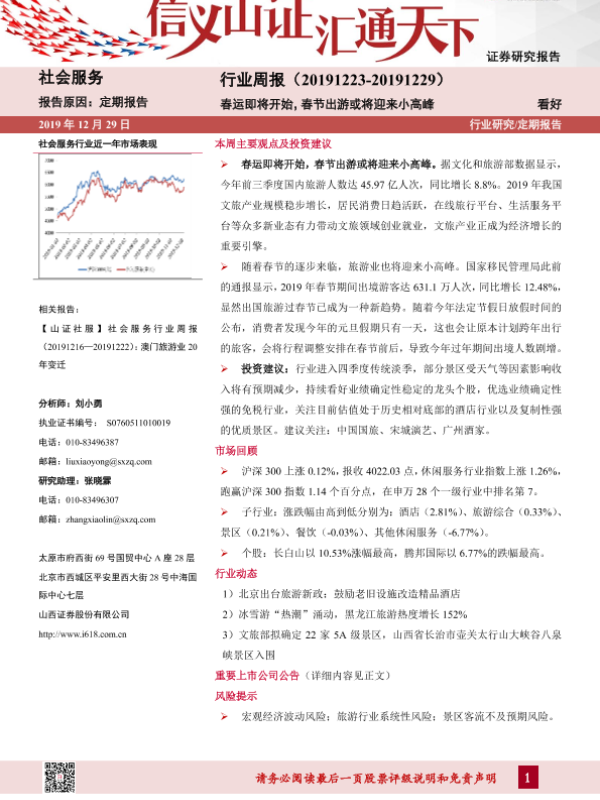 【山西证券】【20191229】社会服务行业周报:春运即将开始,春节出游或将迎来小高峰-10页 行业研究