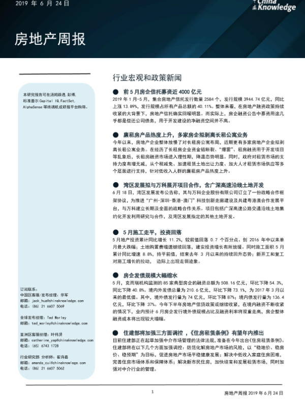 【China Knowledge】【20190624】房地产周报-11页 行业研究