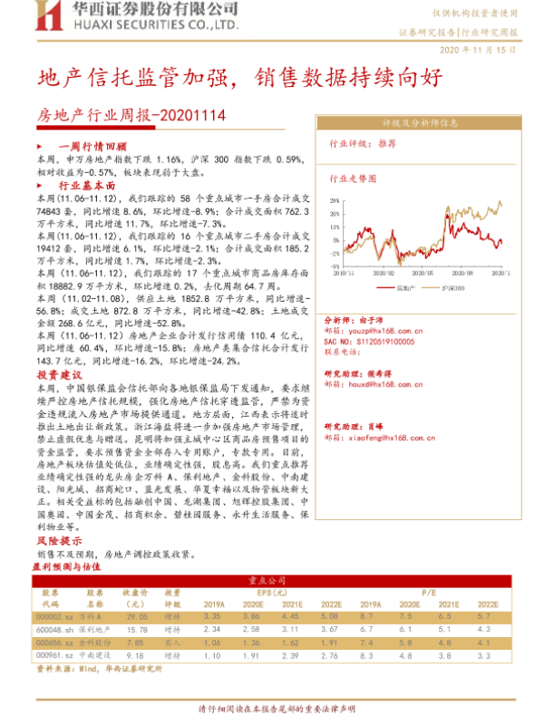 【华西证券】【20201115】房地产行业周报:地产信托监管加强,销售数据持续向好-27页 行业研究