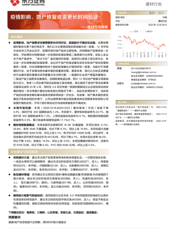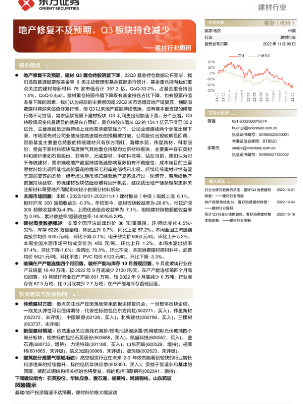 【东方证券】【20221109】建材行业周报:地产修复不及预期,Q3板块持仓减少-22页 行业研究