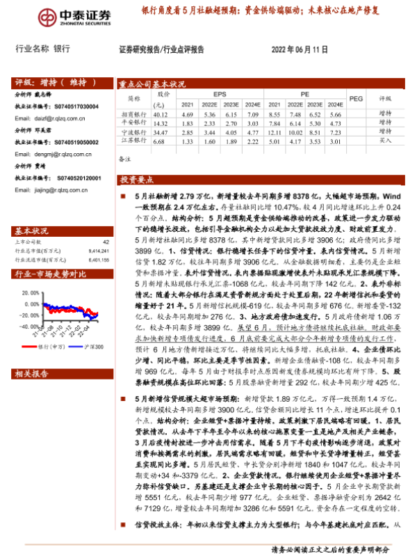 【中泰证券】【20220611】银行角度看5月社融超预期:资金供给端驱动;未来核心在地产修复-13页 行业研究