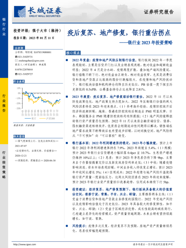 【长城证券】【20230111】疫后复苏、地产修复,银行重估拐点-20页 行业研究