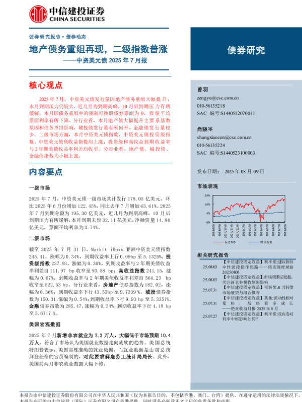 【中信建投证券】【202508】中资美元债 2025年 7月报——地产债务重组再现,二级指数普涨-14页 证券期货研究报告