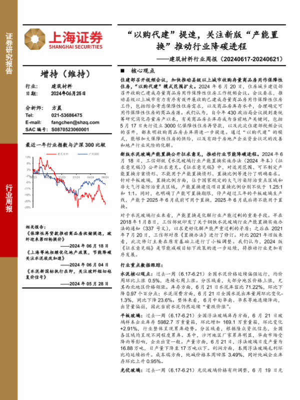 【上海证券】【20240625】建筑材料行业周报:“以购代建”提速,关注新版“产能置换”推动行业降碳进程-10页 行业研究
