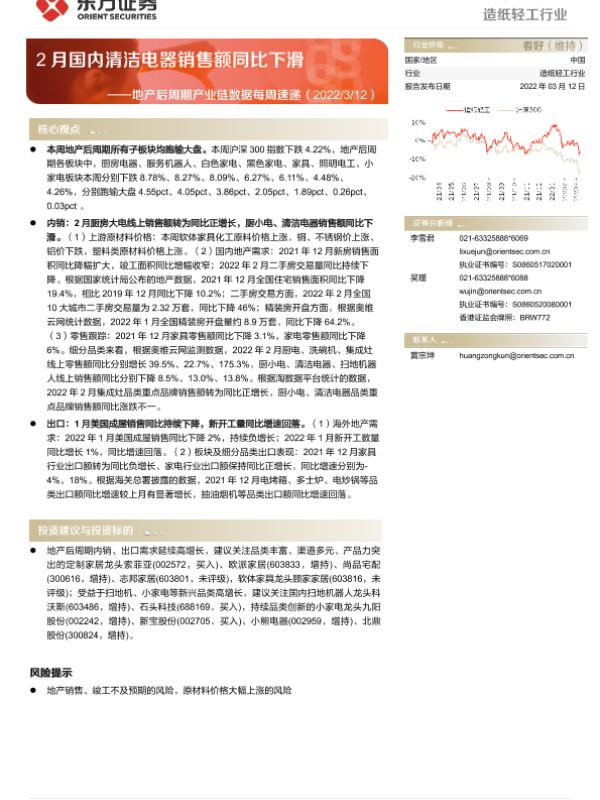 【东方证券】【20220312】2月国内清洁电器销售额同比下滑-13页 行业研究