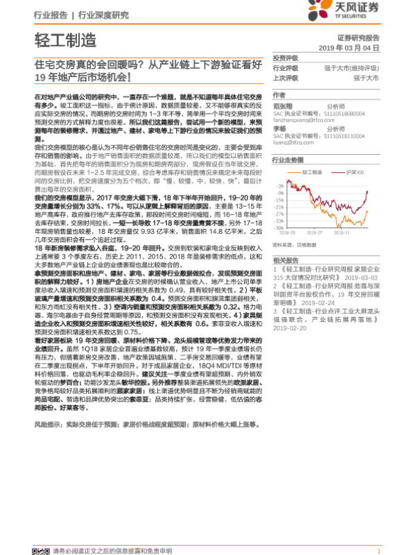 【天风证券】【20190304】轻工制造行业深度研究:住宅交房真的会回暖吗?从产业链上下游验证看好19年地产后市场机会!-11页 行业研究