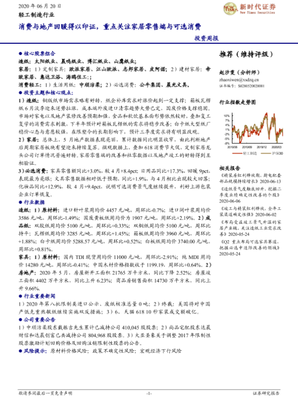 【新时代证券】【20200620】20200620-新时代证券-轻工制造行业投资周报:消费与地产回暖得以印证,重点关注家居零售端与可选消费-23页 行业研究