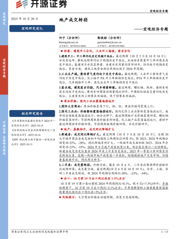 【开源证券】【202510】地产成交转弱——宏观经济专题-15页 证券期货研究报告