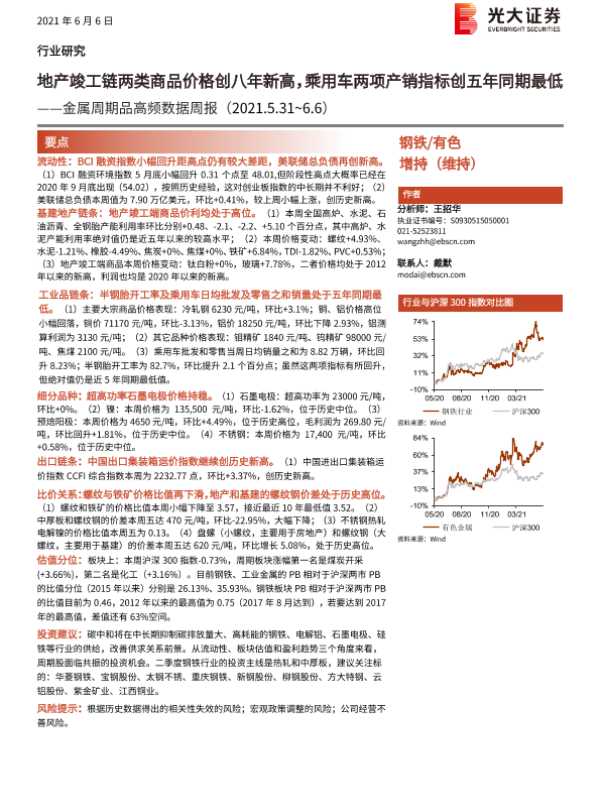 【光大证券】【20210606】金属周期品高频数据周报:地产竣工链两类商品价格创八年新高,乘用车两项产销指标创五年同期最低-22页 行业研究