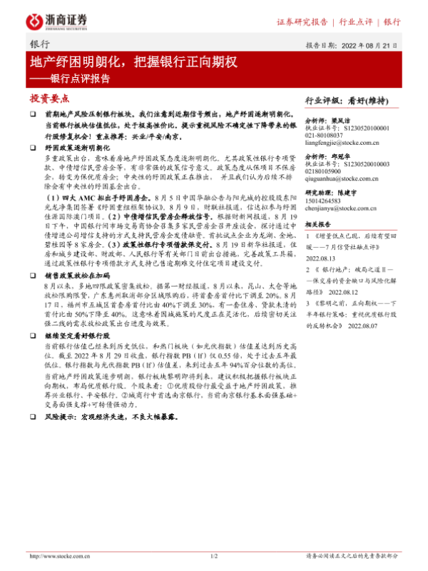 【浙商证券】【20220821】地产纾困明朗化,把握银行正向期权-2页 行业研究