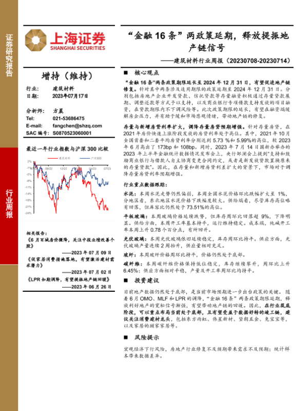 【上海证券】【20230717】“金融16条”两政策延期,释放提振地产链信号-12页 行业研究