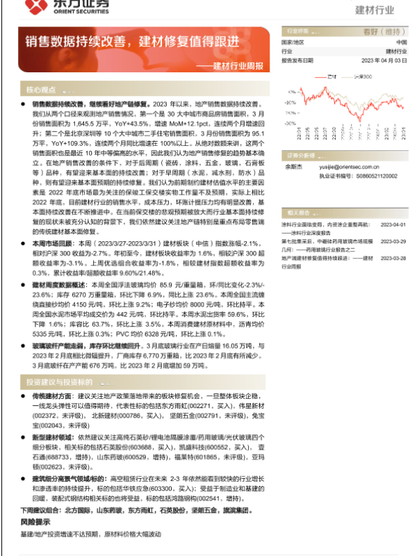 【东方证券】【20230403】销售数据持续改善,建材修复值得跟进-20页 行业研究