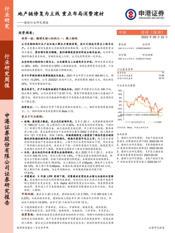【申港证券】【20220522】建材行业研究周报:地产链修复为主线 重点布局消费建材-15页 行业研究
