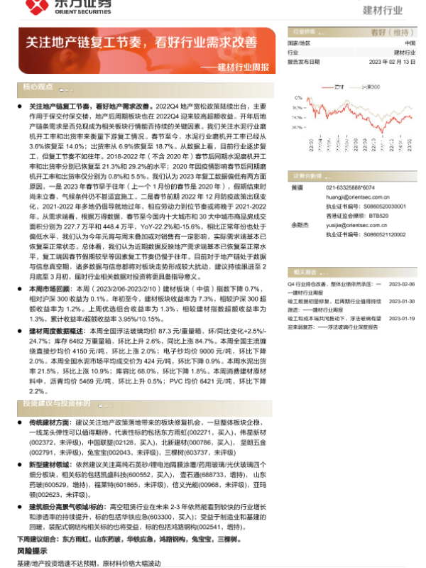 【东方证券】【20230213】建材行业周报:关注地产链复工节奏,看好行业需求改善-21页 行业研究