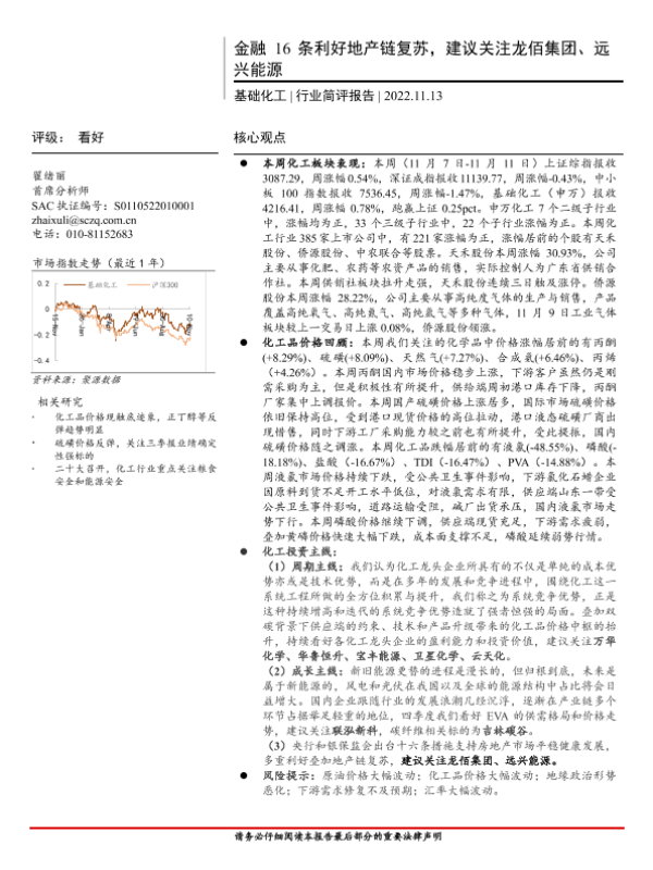 【首创证券】【20221113】基础化工行业简评报告:金融16条利好地产链复苏,建议关注龙佰集团、远兴能源-17页 行业研究