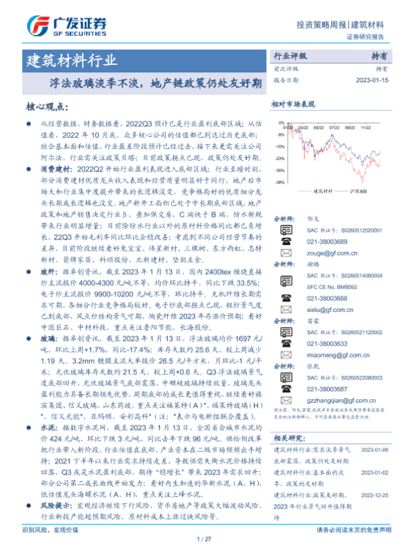 【广发证券】【20230115】建筑材料行业投资策略周报:浮法玻璃淡季不淡,地产链政策仍处友好期-27页 行业研究