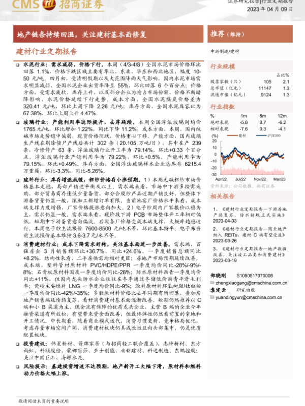 【海通证券】【20230409】建材行业定期报告:地产链条持续回温,关注建材基本面修复-23页 行业研究