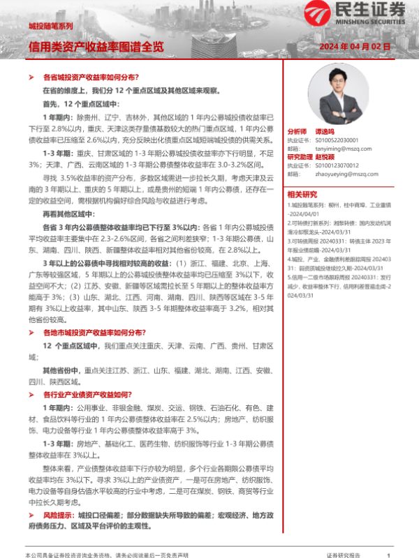 【民生证券】【20240402】城投随笔系列:信用类资产收益率图谱全览-16页 行业研究
