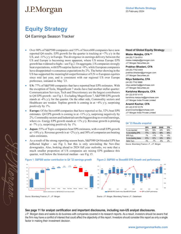【J.P. Morgan】【20240223】JPMorgan-Equity Strategy Q4 Earnings Season Tracker-15页 行业研究