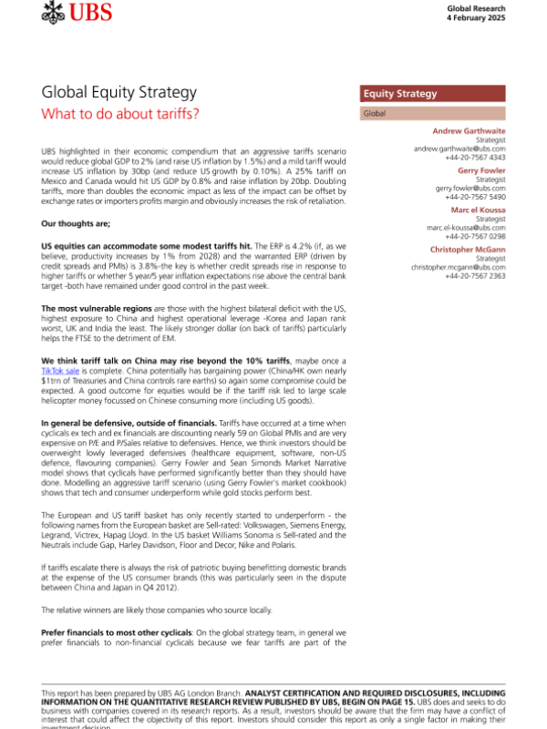 【UBS】【20250204】Global Equity Strategy _What to do about tariffs_-21页 宏观策略